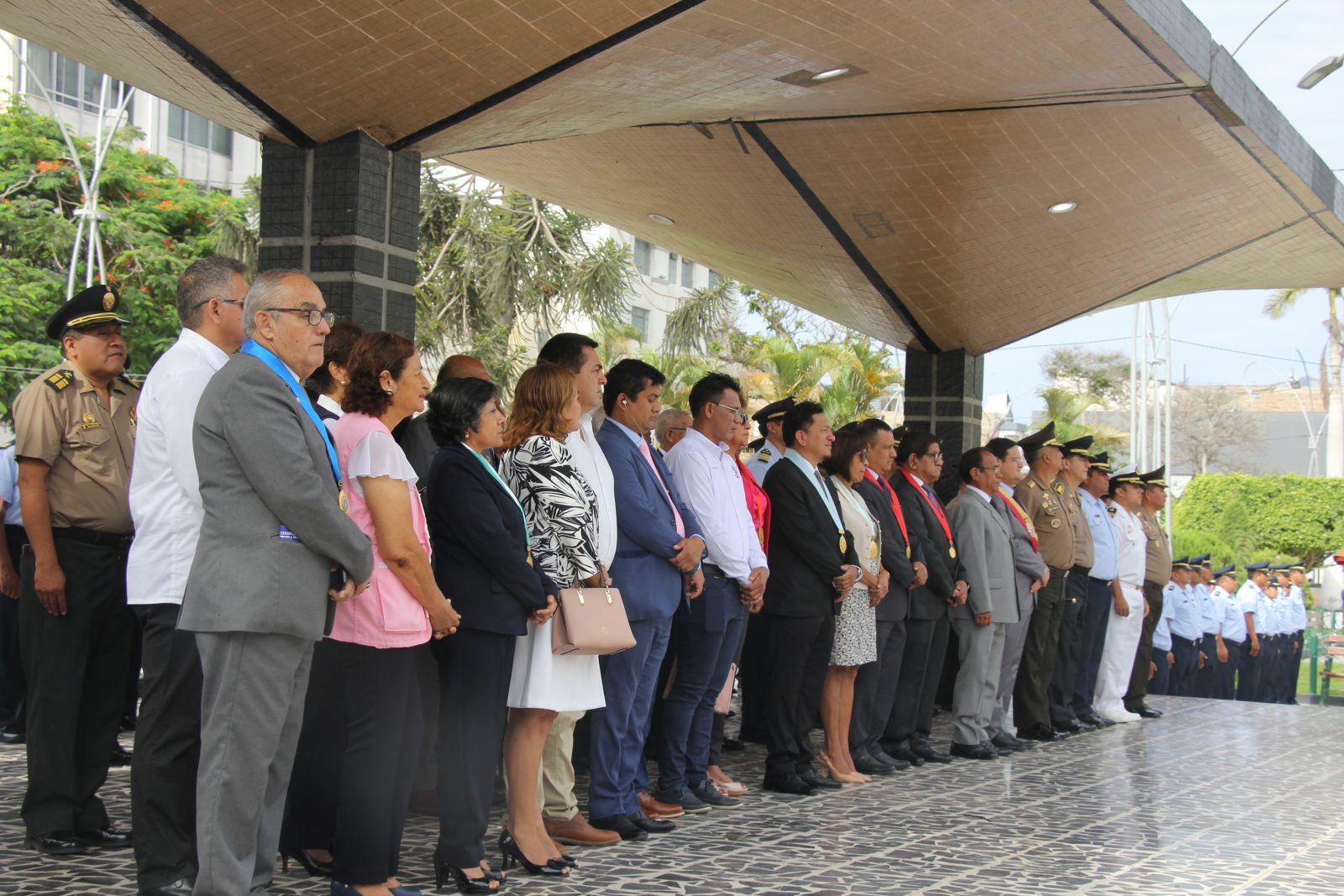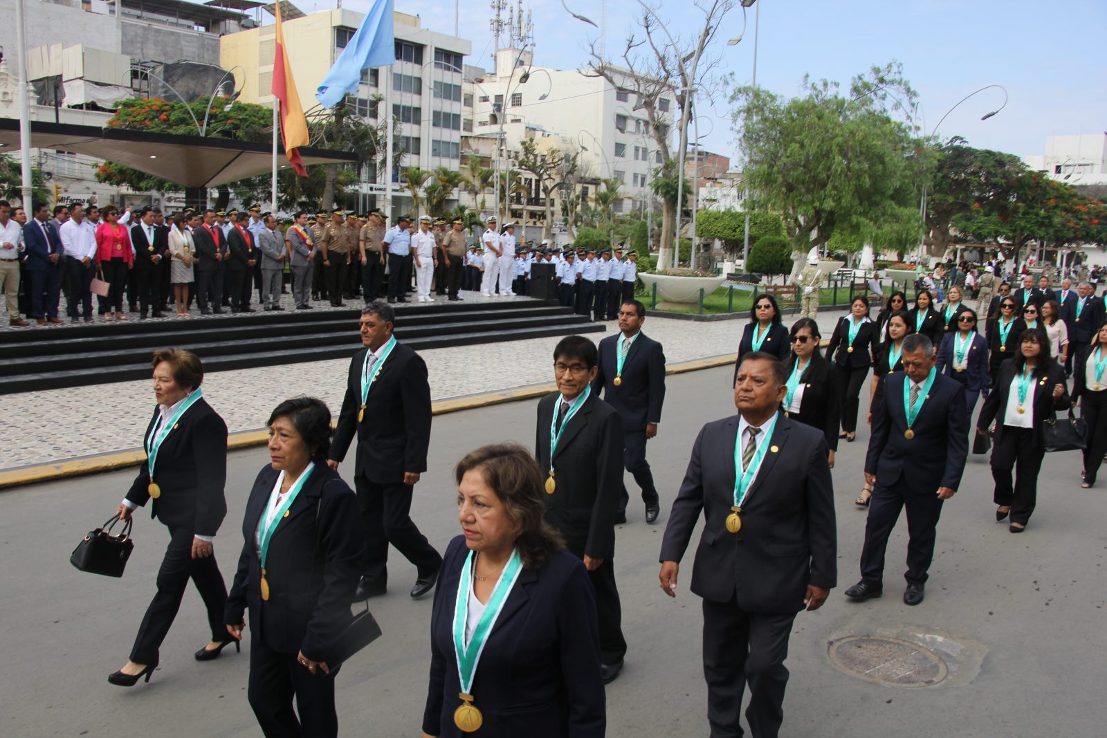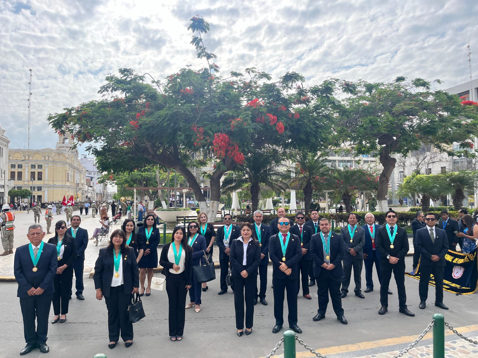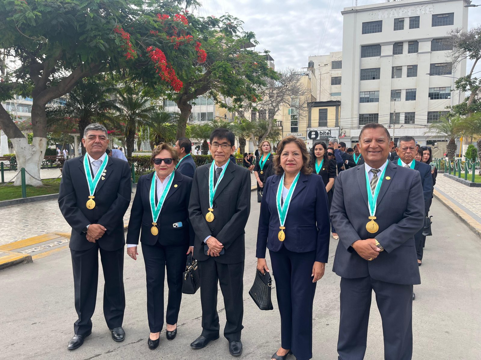 Nos representó la Vice Decana, Dra. Rosa Bertha Mendoza Esquives, quien tuvo el honor de izar la bandera de la Región Lambayeque junto al gobernador regional, Dr. Jorge Luis Pérez Flores, y otras autoridades.